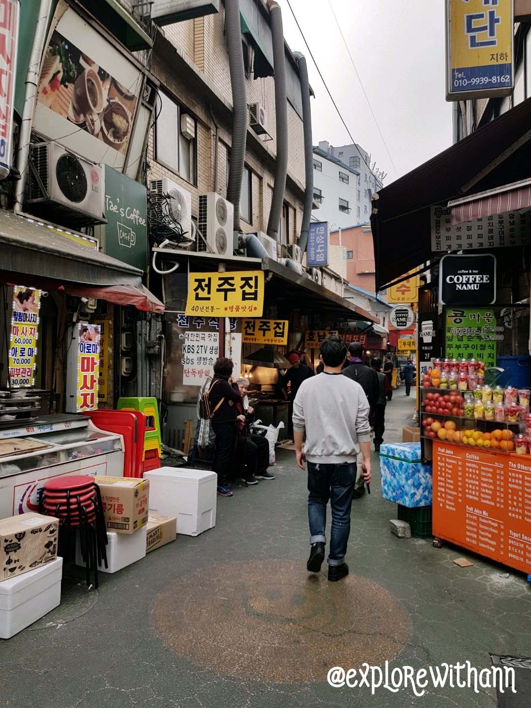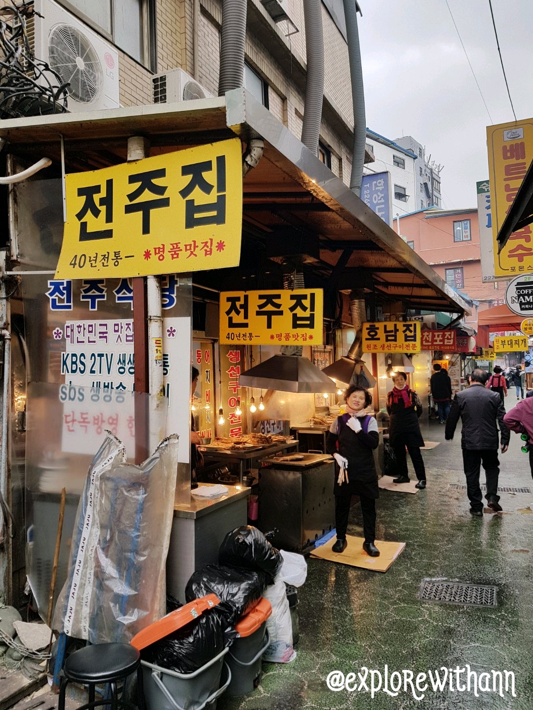 Upon turning left continue walking straight, you will see rows of tentage selling street foods on your right. On your left is the textile the wholesale. According to Naver map I’m supposed turn at right at Vanilla Sky, but I didn’t see Vanilla Sky. Therefore, I just follow the smell of the grilled fish! The alley should look something like this. Its about 5 mins walk from the train station.