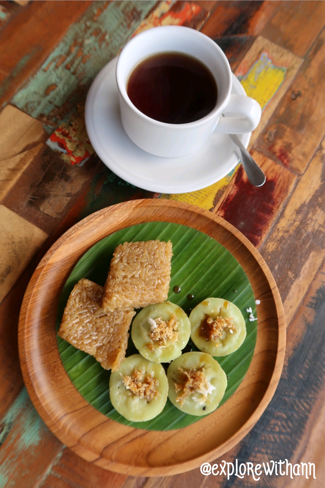 We had our morning tea break, debrief (before and after the jungle trek) and lunch at Green Kubu. Upon our arrival we were served a plate each of local kuehs (sweet dessert) with either coffee or tea. I like that the table was kind of rustic and the kuehs was served on bamboo like plate. It make the overall colour pop!