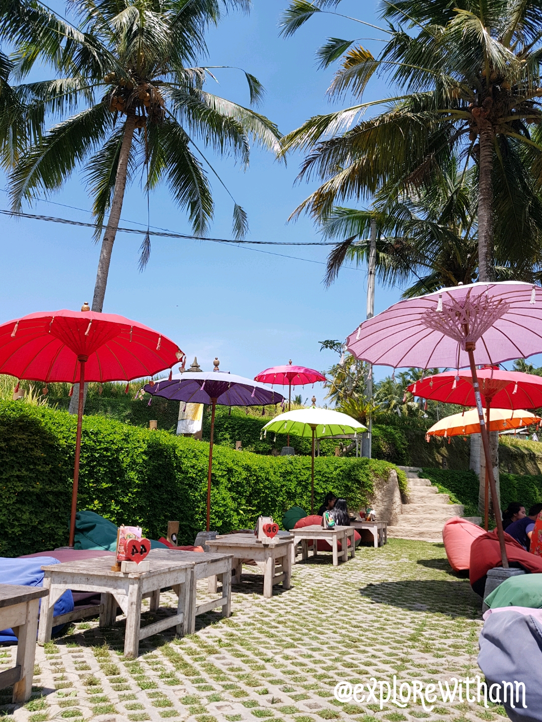 This is a lovely cafe, with nice open air siting and indoor seating (without aircon) I like how they have bright colourful umbrellas with comfortable beanbag for guests to seat back & relax while enjoying their meal and soaking in the sunshine (if you enjoyed the heat). Before we reached the cafe there was small paddy field where some farmers were harvesting rice.