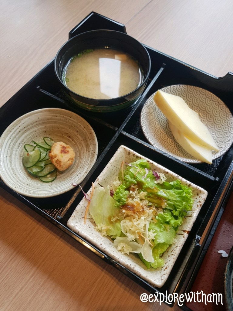 I must say given the location the price for their set lunch was so worth paying for! For every mains item it comes with assorted tempuras + dipping sauce, salad, miso soup, rice, fruits and Chef’s appetizer. Top up for another S$3 you get to have free flow of green tea. The presentation of the food is beautiful and the serving portions is generous as well! The cod fillet is thick and fresh. While the beef (medium-rare) was seared beautifully. Absolutely mouth-watering! 😋